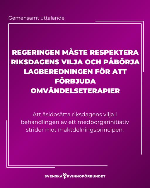 Över 40 organisationer: Regeringen måste respektera riksdagens vilja och inleda lagberedning för att förbjuda så kallade omvändelseterapier